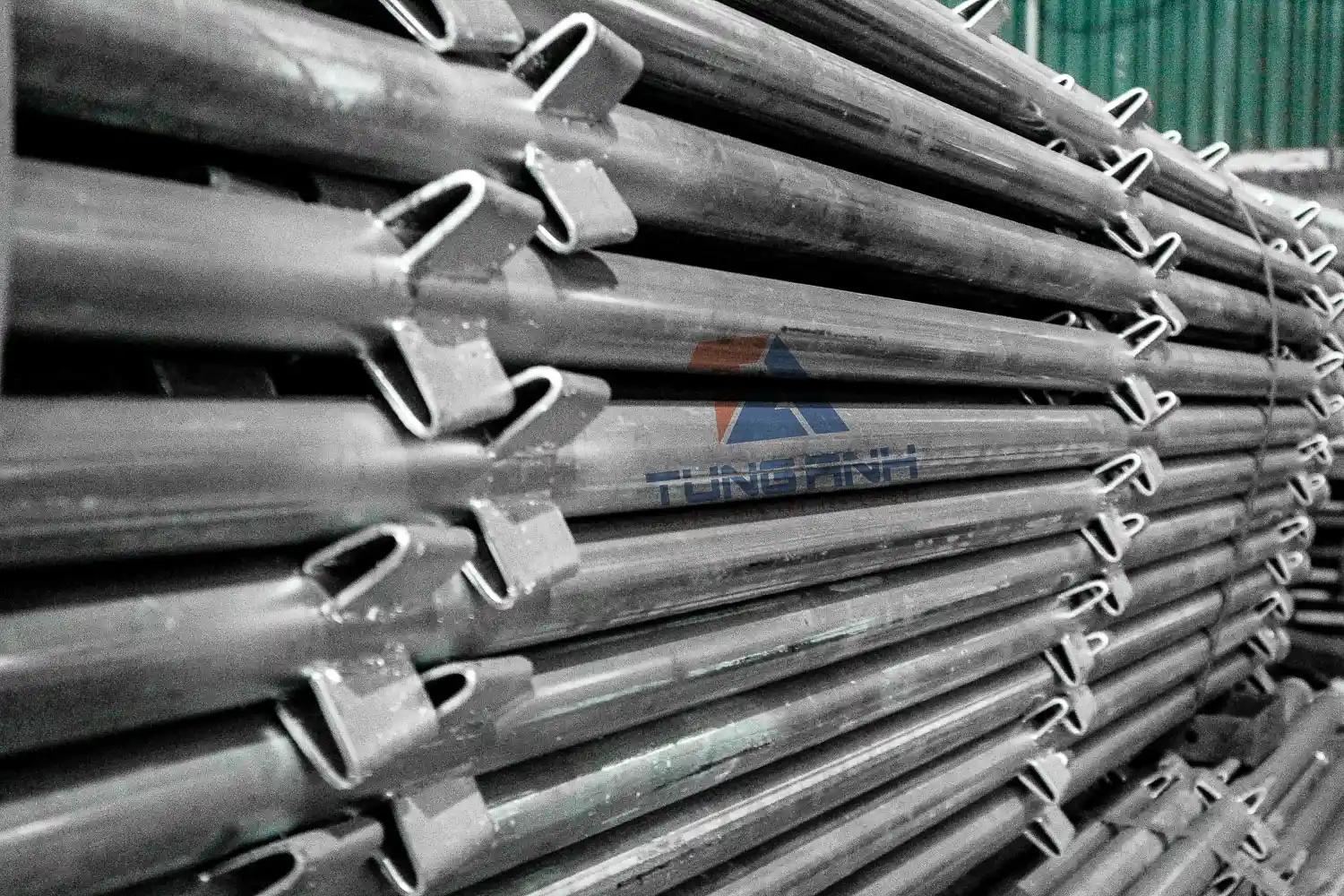 Công nghệ hàn tiên tiến cho ra mối hàn đẹp, chắc chắn, với độ dày ống 2.0ly có khả năng chịu lực tốt. Vị trí hoa Nêm được tính toán khoảng cách giữa các thanh giằng Nêm mạ kẽm tạo nên hệ giáo vững chắc.
