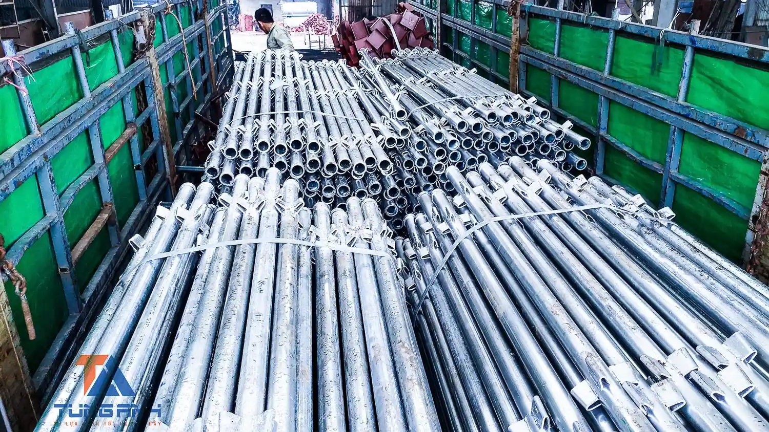 Ngoài ra, khác biệt một chút với đa phần thị trường giàn giáo chống sàn, cây chống giáo Nêm mạ kẽm của Tùng Anh có ống nối liền với giáo (giáo Nêm tu đầu mạ kẽm). Qua nghiên cứu, để tối ưu quản lý hệ giáo Nêm, ống nối liền dễ lắp đặt và không xảy ra trường hợp thất thoát như hệ giáo có ống nối rời (hoặc thiếu ống nối ảnh hưởng đến qui trình lắp đặt hệ giáo).